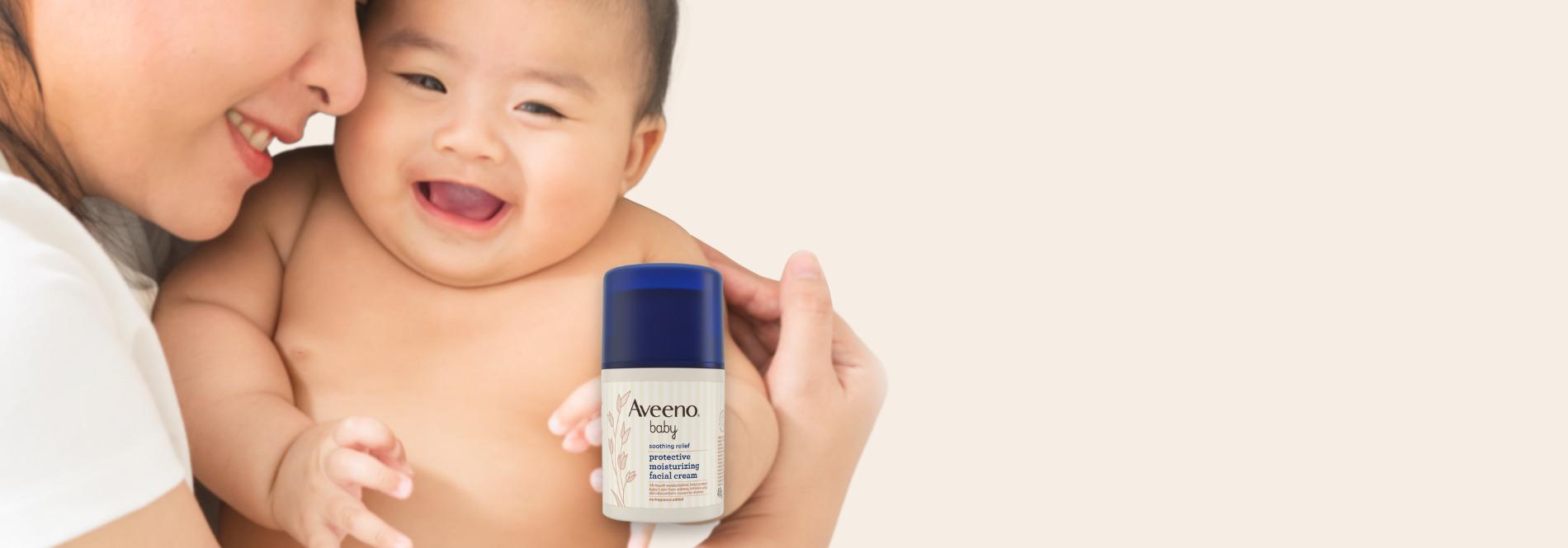 Relieve your baby's dry, sensitive skin in just 20 sec* with Aveeno Baby Soothing Relief Protective Moisturizing Facial Cream!